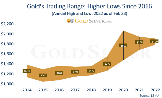 Self explanatory – higher lows and higher highs every year in spite of all of the central bank manipulation to stifle the price.